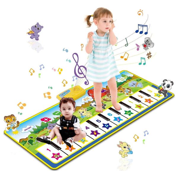 سجادة رقص موسيقية للأطفال من عمر 2 إلى 6 سنوات، مزودة بـ10 مفاتيح بيانو و8 أصوات آلات موسيقية و10 أغاني تجريبية مع وظيفة تسجيل وتشغيل. بساط آمن، قابل للطي وسهل التنظيف، يعزز التنسيق الحركي والمهارات الموسيقية، مناسب للعب اليدوي أو بالقدم