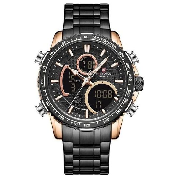 ساعة نافي فورس للرجال Nf9182-BLACK-D - عرض بعقارب, سوار من معدن - اسود