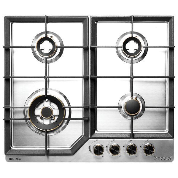 موقد نيوال المدمج HOB-2667 المصنوع من الستانلس ستيل يجمع بين المتانة والاستخدام اليومي المريح. يتميز بأربع شعلات للطهي، ونظام إشعال بطارية لإشعال موثوق، وتوقف أمان ضد اندلاع اللهب يحجب الغاز فوراً. قاعدة باردة في الأسفل للمساعدة في إبقاء السطح أكثر برودة أثناء الطهي، مع دعائم من الحديد الزهر ذات تحمل عالي لتوفير استقرار للقدور الثقيلة. المقابض تتحمل حتى 180 درجة مئوية، مما يعزز السلامة أثناء الطهي. مصمم للتركيب المدمج، ليناسب مطابخ العراق الحديثة ويقدم أداء موثوق سطحاً نظيفاً يسهل تنظيفه.