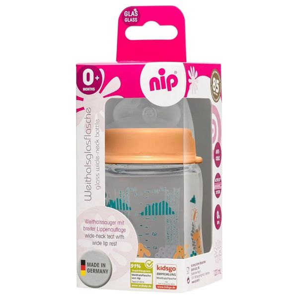 رضاعة نيـب بفتحة واسعة بسعة 120 مل مصممة للرضع من الولادة (0 أشهر فما فوق). مصنوعة من زجاج بوروسيليكات عالي الجودة بفتحة عنق واسعة لسهولة الملء والتنظيف، وتأتي مع لهاية مصنوعة من السيليكون بنظام ACTIFLEX الذي يمنع دخول اللهاية أثناء الرضاعة وكذلك صمام مضاد للمغص يقلل من الغازات والانزعاج أثناء الرضاعة. الزجاجة باللون البرتقالي ومناسبة للتعقيم في المايكروويف أو جهاز التعقيم الكهربائي.