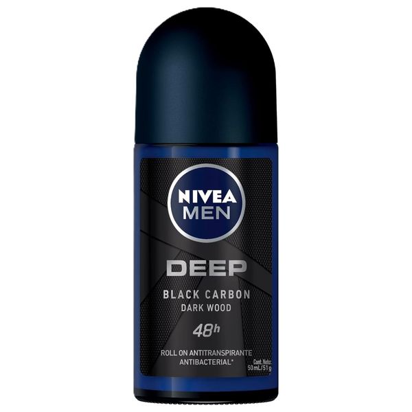 نيفيا مين ديب بلاك كربون دارك وود مزيل عرق رول أون - حماية 48 ساعة بتركيبة مضادة للبكتيريا, 50 مل