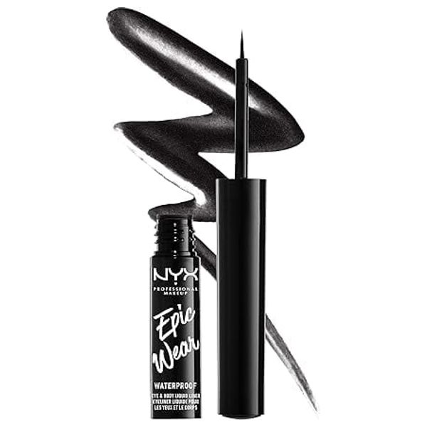 كحل NYX Epic Wear Eyeliner سائل مقاوم للماء يقدّم خطوطاً دقيقة وتدوم طويلاً بدون تشقق، أو سيلان، أو تلطيخ. تركيبة سلسة وسهلة الدعس تتيح رسم خطوط حادة وعيون محددة مع نهاية بلون أسود معدني أنيق.