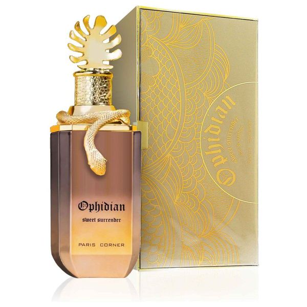عطر اوفيديان سويت سرندر من باريس كورنر عطر دافئ وحلو للجنسين يلف الحواس بنوتات الفانيلا الكريمة والك caramel وتوليفة زهرية ناعمة. هذا العطر المتعدد الاستخدامات مناسب للاستخدام اليومي والمناسبات المسائية، ويمنح أجواءً مريحة وجذابة. زجاجته الفاخرة وتغليفه الذهبي يعكسان فخامة الحلاوة في العطر.