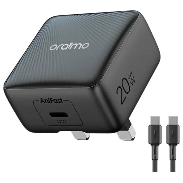 شاحن Oraimo بقوة 20 واط يوفر شحنًا سريعًا وآمنًا لأجهزتك بفضل تقنية AniFast™ الذكية، مع كابل USB-C إلى USB-C المرفق لضمان أفضل أداء أثناء الشحن اليومي.