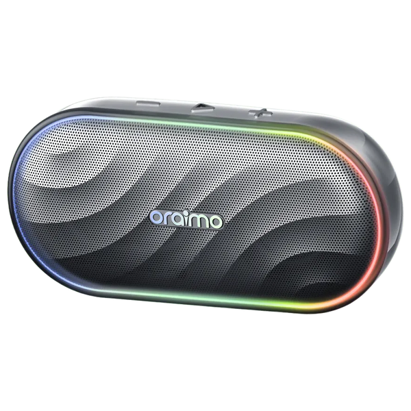 سبيكر أورايمو SpaceBox بقدرة 8 واط، مع إضاءة LED تفاعلية، دعم تطبيق Oraimo، بطارية طويلة العمر مع نمطي تشغيل، ومنفذ تايب-C، يدعم التشغيل السلكي واللاسلكي والراديو FM.