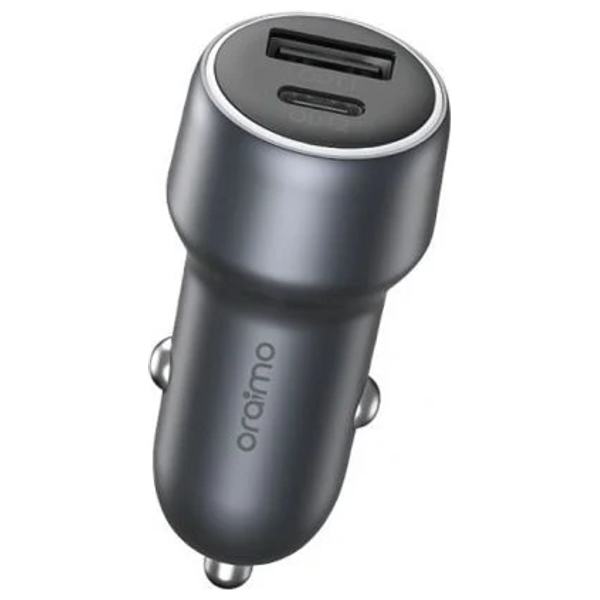 شاحن سيارة أورايمو بوليت بقدرة 48 واط، مع منفذين Type-A وType-C لشحن سريع وفعّال أثناء التنقل.