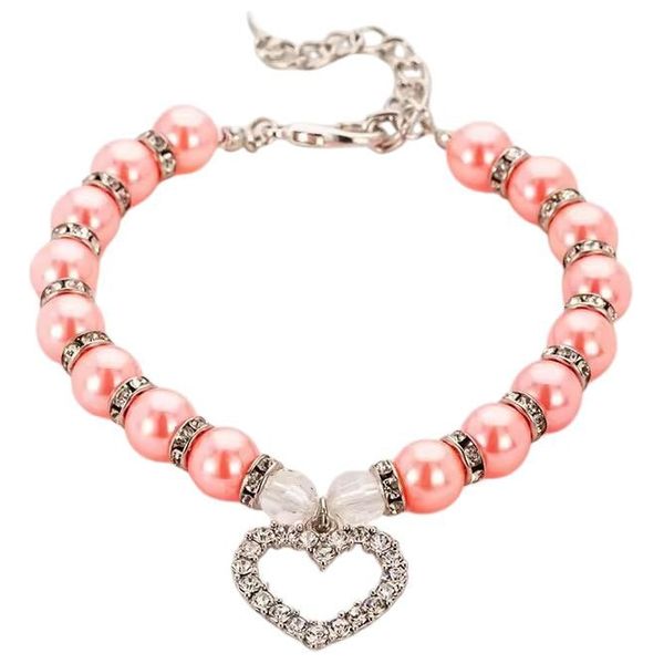 خرز لؤلؤي صناعي مع فواصل معدنية أو كريستالية وقلادة قلب مركزية مرصعة بالأحجار، إغلاق لوبستر مع سلسلة قابلة للتعديل لملاءمة مريحة