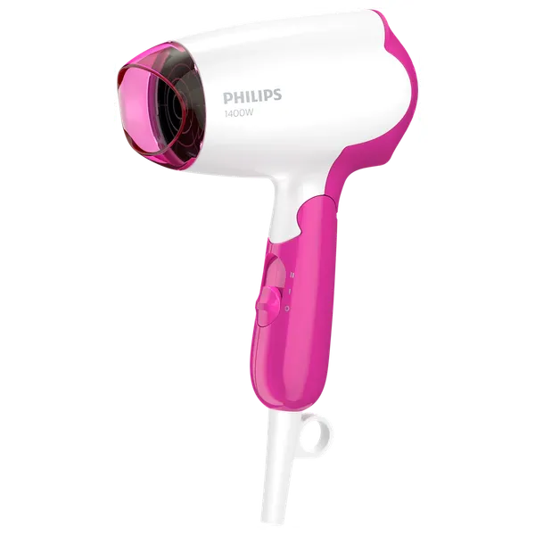 مجفف شعر فيليبس بقوة 1400 واط يوفر تجفيفاً سريعاً وفعالاً مع إعدادين للحرارة وسرعة قابلين للتعديل. تصميم مدمج وخفيف، مقبض قابل للطي، فوهة مركّزة، سلك بطول 1.8 متر يمنح حرية الحركة، ومحرك DC موثوق للأداء اليومي.