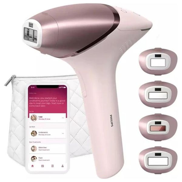 استمتعي بتجربة إزالة شعر احترافية في المنزل مع جهاز Philips Lumea IPL BRi958 من سلسلة 9000. تتضمن هذه المجموعة أربعة ملحقات للجسم والوجه ومنطقة البكيني والإبطين، مدعومة بتقنية SenseIQ لإزالة شعر مريحة وطويلة الأمد. يمكن لدورة علاج كاملة أن توفر نتائج تدوم حتى ستة أشهر، ويقدم تطبيق Lumea IPL إرشادات شخصية لمساعدتك على تحسين روتينك.