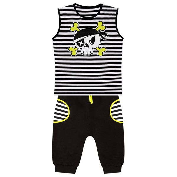 طقم أولاد تيشيرت مخطط بطابع القراصنة وبنطال كابري - 9 سنوات
