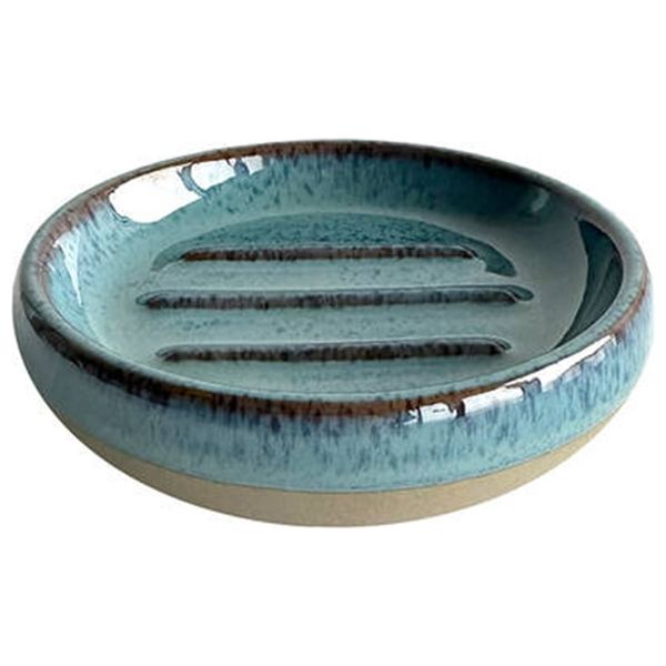 طبق صابون Cartri من Primanova باللون الأزرق، خزفي مطلي، مستدير وضحل مع 3 فتحات تصريف للحفاظ على جفاف الصابون، الأبعاد: 3×12 سم، مناسب لسطح الحمام والحوض