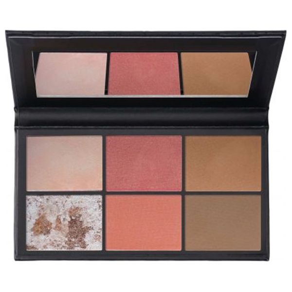 باليت وجه متعدد الوظائف، ذو تركيبة نباتية عالية الصبغة مع الوان لامعة وغير لامعة، يحتوي على درجتين من الهايلايتر الذي يوفر توهجاً طبيعياً، ودرجتين من أحمر الخدود الذي يمنح نظارة طبيعية، ودرجتين من البرونزر لتوهج مشمس ومثالي لتحديد الوجه.