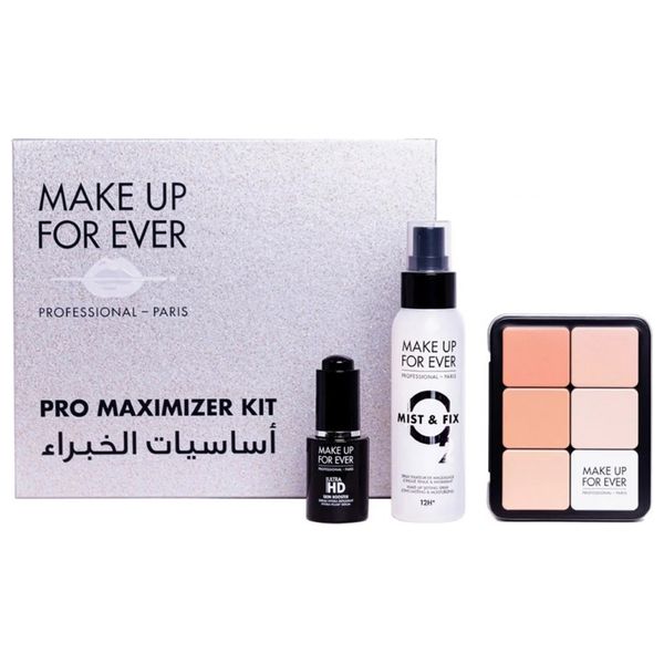 مجموعة ماكياج تتضمن سيروم احترافي معزز للبشرة فائق الدقة، باليت كريم الأساس يعمل على توحيد وتحديد الوجه وأخفاء العيوب وسبراي مرطب للوجه يدوم لمدة 12 ساعة.