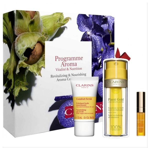 مجموعة العناية بالبشرة, تتكون من: لوشن بلانت كولد عبارة عن زيت طبيعي 100٪ يعزز التغذية الطبيعية لبشرتك بحجم 35 مل. سكراب نوريشنك لتقشير البشرة بلطف بحجم اويل 15 مل. بلسم مغذي للشفاه كومفورت الذي يساعد على جعل الشفاه لامعة وناعمة بحجم 2.8 مل.