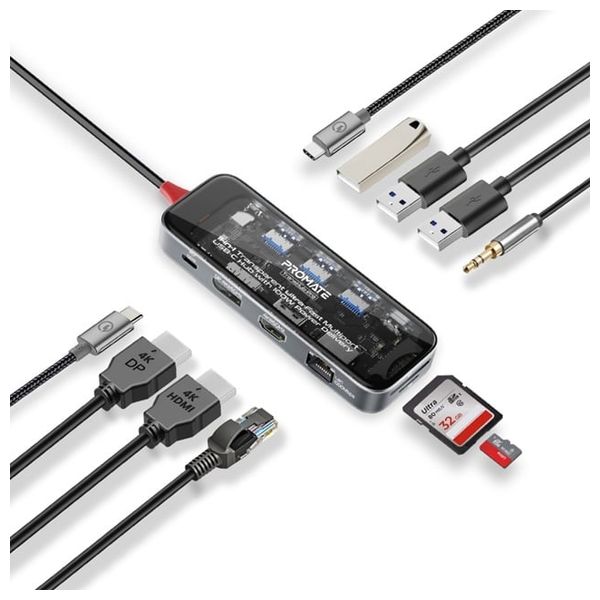 موزع منافذ يو اس بي سي متعدد الوظائف من بروميت - TransHub Pro - بقوة 100 واط - بسعة 2 تيرابايت - اسود