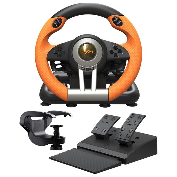 تصميم مريح بعجلة دوران 180 درجة يوفر تحكمًا دقيقًا، مع محركات اهتزاز مزدوجة تعزز الإحساس بالاصطدامات والتضاريس ومحاكاة سيارات السباق بشكل ممتع وحقيقي.