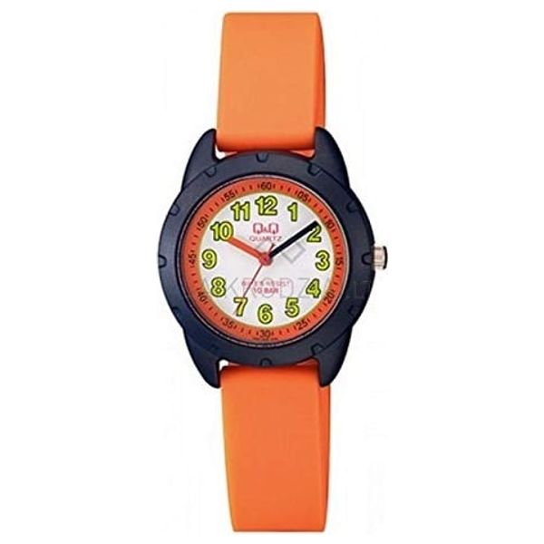 ساعة كيو اند كيو للاطفال VR97J005Y - عرض بعقارب, سوار من الراتنج - برتقالي