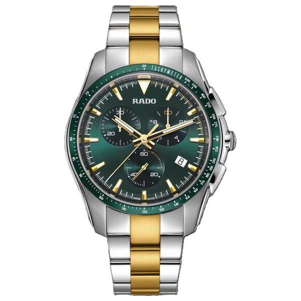 ساعة بقطر 44.9 مم تعمل بحركة كوارتز، مع ميناء أخضر وسوار فولاذي مصقول بثلاثة صفوف مع وصلات وسطية مصقولة باللون الأصفر. العقارب والمؤشرات الصفراء لضمان وضوح القراءة، العلبة مصنوعة من الفولاذ المقاوم للصدأ والسيراميك عالي التقنية، وإطار التاكيوميتر من السيراميك الأخضر المصقول. مقاومة للماء حتى 100 متر، وزن الساعة 140 جرام