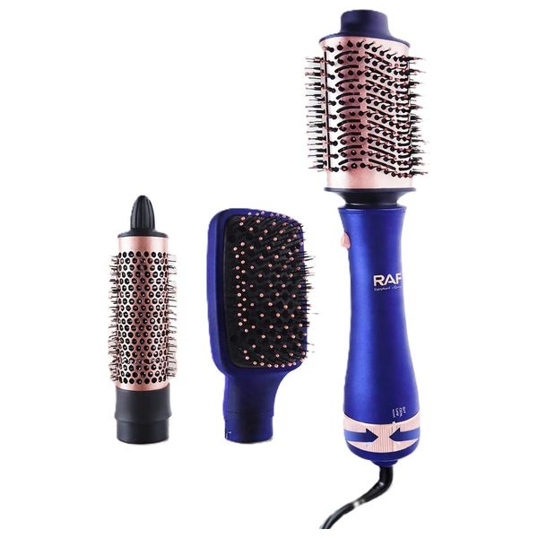 فرشاة تصفيف حرارية متعددة الوظائف تتيح التجفيف والتمليس والتجعيد بملحقات قابلة للتبديل، مع هواء ساخن لتصفيف وتجفيف الشعر في الوقت نفسه. مزودة بتحكم بدرجات الحرارة للحفاظ على سلامة الشعر، تصميم مريح وسهل الاستخدام، مناسبة لجميع أنواع الشعر، مع سلك دوّار 360° لحرية حركة أكبر