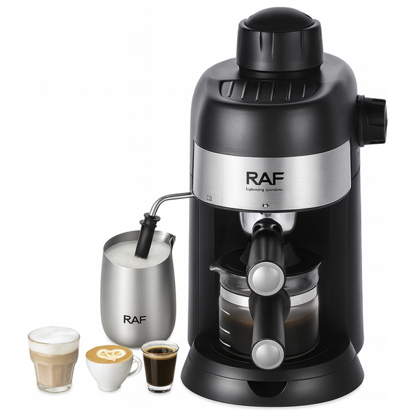 جهاز قهوة، 800 واط، ضغط 3.5 بار، سعة 240 مل، مع فوهة تبخير للحليب، تصميم ستانلس ستيل، تشغيل بزر واحد ودرج تنقيط قابل للإزالة