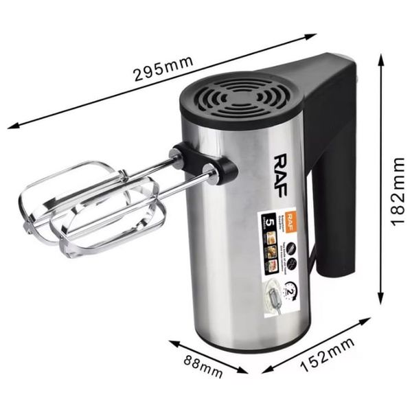 يقدم خلاط RAF اليدوي بقوة 800 واط خفقاً قوياً مع 5 سرعات ووضع Turbo لتجهيز العجين والخفق بسرعة. يضم خطافين للعجين ومِلقحتين للخفق لمرونة في المهام المطبخية. جسم مطلي بالكروم مع مقبض مريح وأجزاء قابلة للفك، مما يضمن المتانة وسهولة التنظيف لجعل الخبز اليومي أسهل.