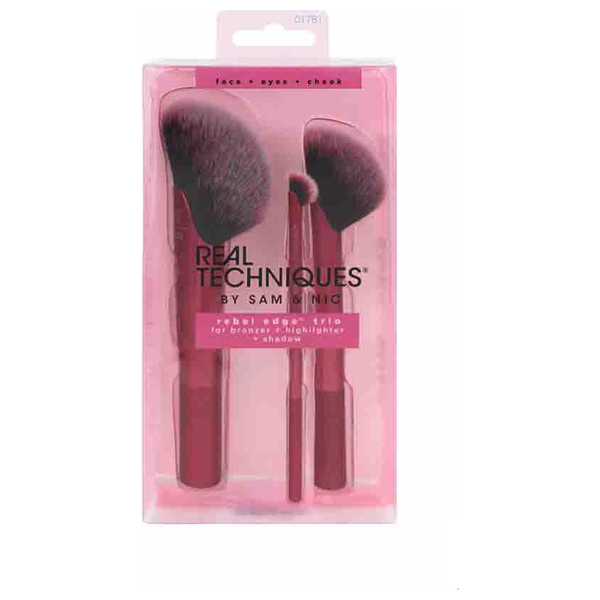 مجموعة فرش ماكياج ريبل ايدج تريو وردي 3 قطع - ريل تكنيكز