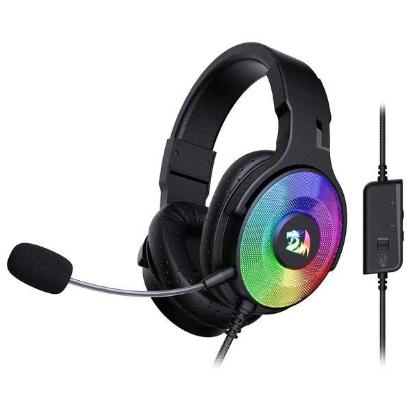 سماعة ألعاب سلكية ريدراجون باندورا H350 - إضاءة ار بي جي ديناميكية - صوت محيطي ستيريو - سماعات 50مم - ميكروفون قابل للفصل - اسود