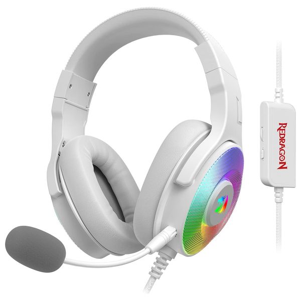 سماعة ألعاب سلكية ريدراجون باندورا H350 - إضاءة خلفية ار بي جي - صوت محيطي ستيريو - سماعات 50مم - ميكروفون قابل للفصل - أبيض