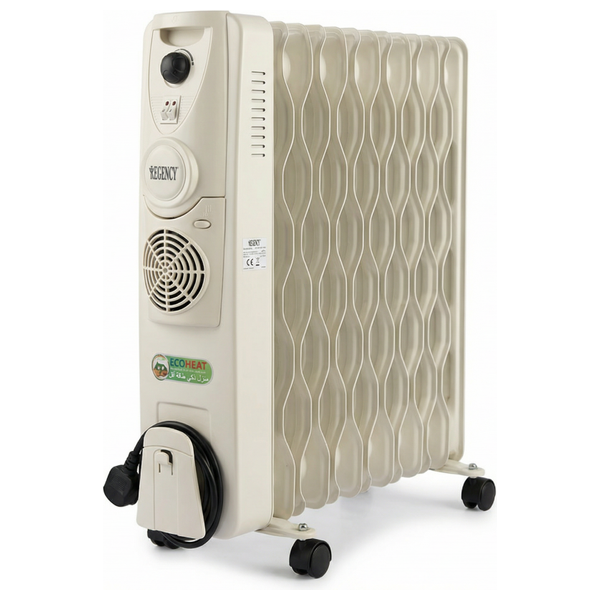 تقدم مدفأة Regency الزيتية دفئاً سريعاً ومتوازناً بقوة 2800 وات. سطح تسخينها المكوَّن من 13 ريشة يوفر تغطية حرارية واسعة، بينما تساهم المروحة Turbo في توزيع الحرارة بسرعة. تتميز الوحدة بعجلات متينة وتخزين مدمج للسلك لسهولة الحركة والتنظيم. يعزز نظام Eco Heat كفاءة استهلاك الطاقة، مما يساعد على الحفاظ على دفء الغرف بشكل اقتصادي وآمن، مناسبة للاستخدام المنزلي والمكاتب في العراق.