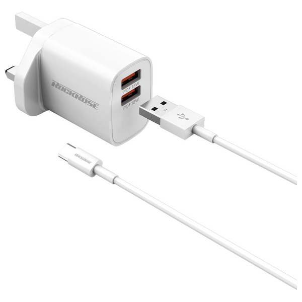 شاحن أنيق بلون أبيض بقوة 18 واط، مصمم لتوفير شحن سريع وموثوق لمختلف الأجهزة. يأتي مع كابل بطول متر واحد مزود بمنفذي USB-A وType-C، ما يمنحك مرونة عالية في شحن الهواتف والأجهزة اللوحية والإكسسوارات. يوفر أداءً ثابتًا ومناسبًا للاستخدام اليومي في المنزل أو أثناء التنقل، مع تصميم عملي يلبي احتياجات الشحن الأساسية بكفاءة.
