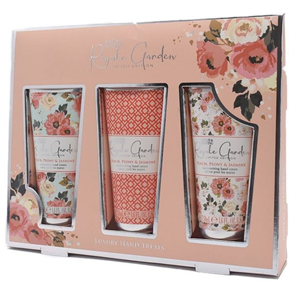 مجموعة العناية باليدين, تحتوي على ثلاث كريمات مرطبة لليدين بعطور مختلفة من الخوخ والفاوانيا والياسمين بحجم 50 مل, يعمل كريم اليد على تغذية جلد اليدين المجهد ويترك بشرتك مرطبة وناعمة الملمس.