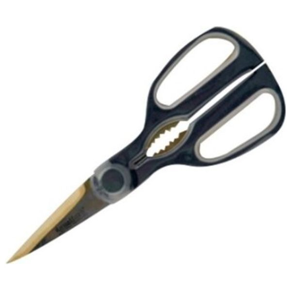 رويال فورد، مقص مطبخ 3 في 1، كسارة صواميل وفتاحة، هيكل كامل من الفولاذ المقاوم للصدأ مع طلاء مطاطي أسود لسهولة الإمساك