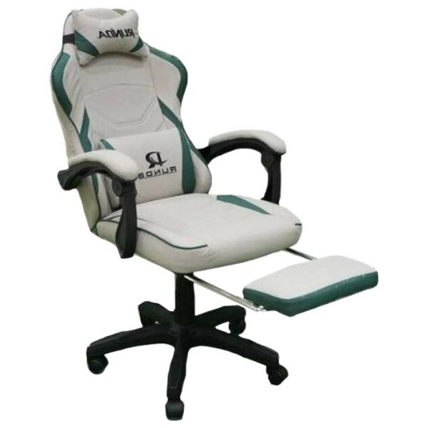 كرسي ألعاب روندا 6065 بالأبيض والأخضر مصمم للجلسات الطويلة. يتميز بظهر قابل للإمالة حتى 135 درجة، وذراع ثابت، ومقعد عريض، ومسند قدم متحرك، وارتفاع قابل للتعديل. يأتي مع وسادتين وقاعدة بخمس أقدام مع عجلات لتحقيق الثبات والتنقل بسهولة .
