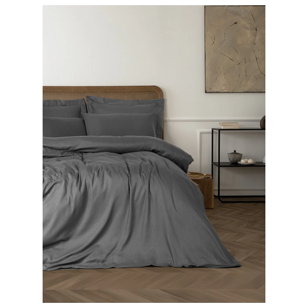 القماش 60% ليّوسيل و40% قطن وبوزن 120 جرام/م² لراحة مميزة، يتضمن الطقم غطاء لحاف بمقاس 200×220 سم، شرشف بمقاس 240×260 سم، واثنان من أغطية الوسادة أكسفورد 50×70 سم