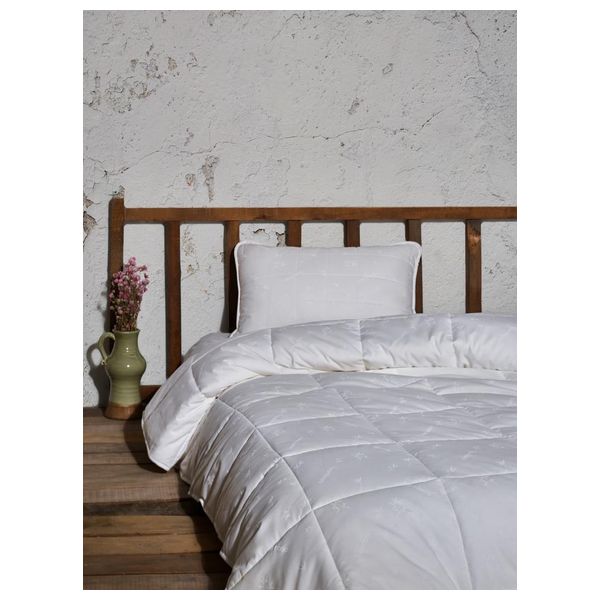 يغلف الغطاء الخارجي مكونات من 70% قطن و30% خيزران لملمس ناعم وبارد، الحشو الداخلي مكوَّن من 60% ميكروجيل و40% خيزران وبسماكة 300 غرام/م² ليوازن بين الدفء والتهوية