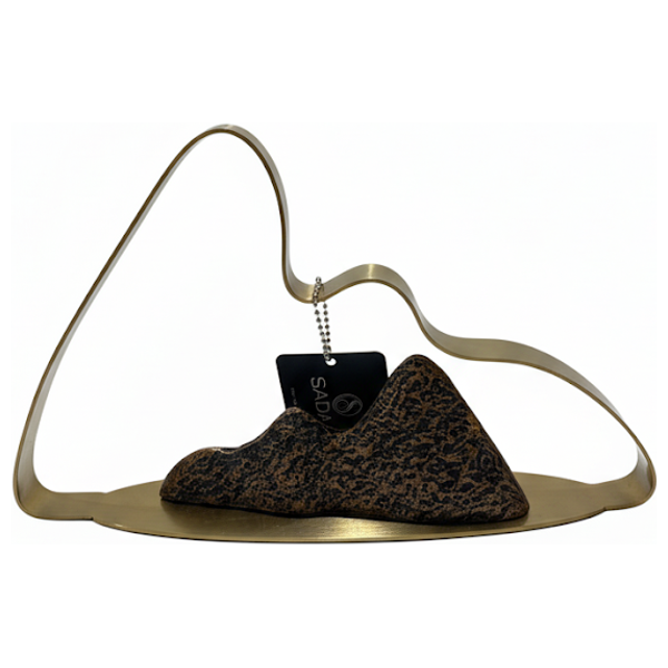 تصميم متموّج عصري، تجمع بين شريط معدني ذهبي ملتف وحجر مركزي بلون برونزي داكن لإضفاء تباين وعمق بصري