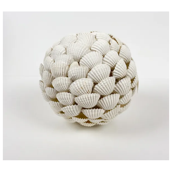 مزهرية SY00B من صدف بلون أبيض لؤلؤي مطفي بنقشة صدفة بحرية وتفاصيل سطحية بنسيج عميق. الشكل الكروي أبعاده ٥٥×٥٥×٦٧ سم، وتضيف لمسة ديكور أنيقة لمساحات المعيشة والمداخل بالعراق وتتناغم مع أنماط الديكور الساحلي والحديث.