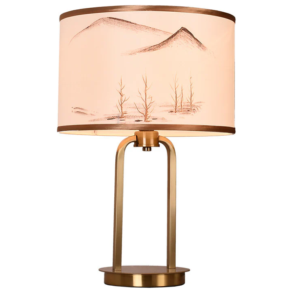 مصباح طاولة بقاعدة معدنية ذهبية وغطاء قماشي، يوفر إضاءة دافئة ومريحة. بقياس 360 × 600 مم، يضفي لمسة زخرفية أنيقة على غرف المعيشة، النوم، المكاتب ومساحات الضيافة