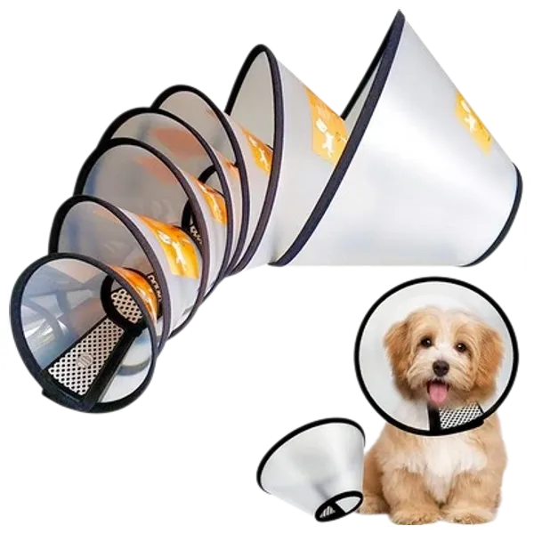 طوق مخروطي قابل للتعديل يمنع القطط والكلاب من لعق الجروح بعد الجراحة، مزود بلوحات مرنة للراحة وسهل التنظيف
