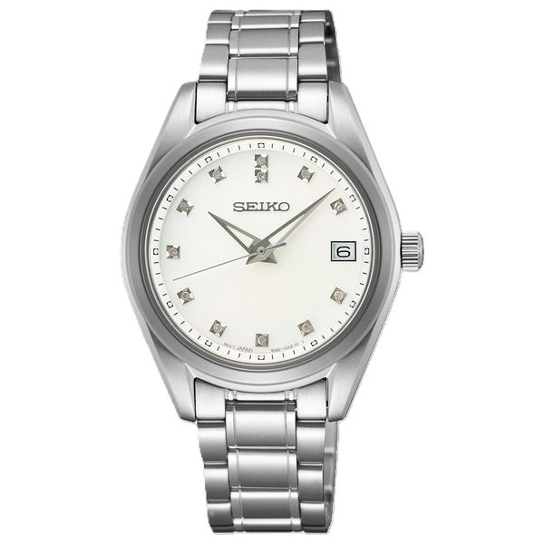 ساعة كوارتز بدقة ±15 ثانية شهريًا وعمر بطارية حوالي 3 سنوات، بتصميم أنيق من الفولاذ المقاوم للصدأ مع ميناء من عرق اللؤلؤ مرصع بالألماس وزجاج ياقوتي، مقاومة للماء حتى 10 بار، بسمك 8.2 مم وقطر 32 مم