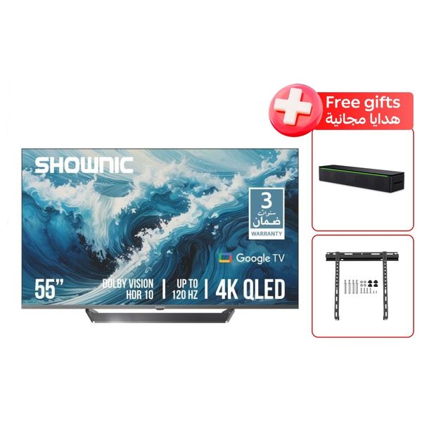 اكتشف شاشة شونك 55" جوجل تي في: تلفزيون ذكي 4K UHD بمعدل تحديث 120Hz، يعمل بنظام أندرويد/جوجل تي في بنسخة Android 14، مع MEMC وتسجيل PVR وتلفزيون داخلي DVB-T2/S2. يضم أربعة منافذ HDMI 2.1، ومنافذ USB، وصوت دولبي محيطي لتجربة مشاهدة مميزة في العراق.