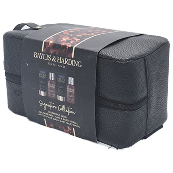 مجموعة الاستحمام للرجال برائحة الفلفل الأسود والجينسنغ, تحتوي على 5 قطع: غسول للشعر والجسم بحجم 100 مل. غسول للوجه بحجم 100 مل. بلسم ما بعد الحلاقة بحجم 50 مل. جل استحمام بحجم 50 مل. حقيبة أنيقة من الجلد الصناعي.