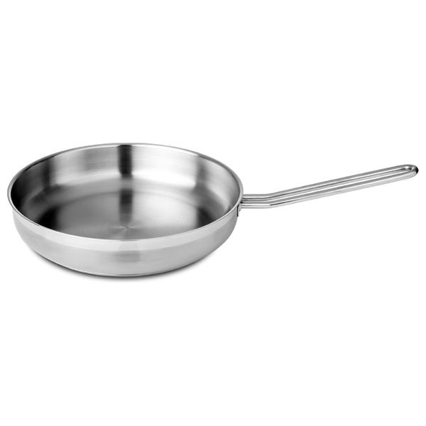 مقلاة فري بان من سيلامبوس بمقاس 28 سم مصنوعة من ستانلس ستيل مع تشطيب ساتين. توفر توزيع حرارة متوازن ومتانة عالية للقلي والتحمير يومياً. مصنوعة في البرتغال وتقدم أداء موثوقاً وسهولة في التنظيف.