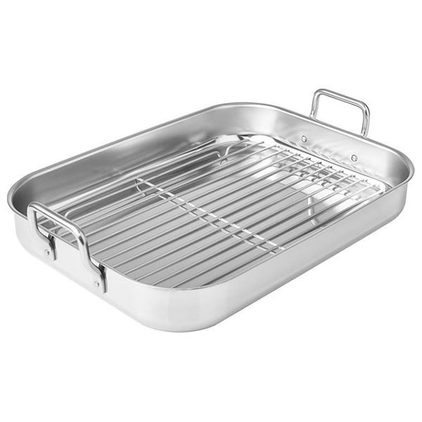 سيلامبوس سادو صينية خبز من الفولاذ المقاوم للصدأ بسطح مصقول وشبكة مدمجة ومقابض جانبية متينة. مقاسها 36 × 27 سم يدعم الحصص العائلية ويضمن توزيعاً متساوياً للحرارة أثناء الشواء والخَبز للسمك والخضار والطبخات المتنوعة. مصنوعة في البرتغال من فولاذ عالي الجودة وتتميز بالمتانة وسهولة التنظيف لتجربة طبخ موثوقة يومياً.
