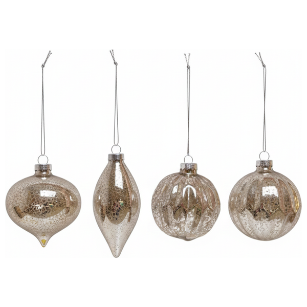 أربع كرات زجاجية فضية لعيد الميلاد ضمن مجموعة واحدة. كل كرة بقطر 8 سم وتتميز بلمسة فضية معدنية تضيف لمعة احتفالية لشجرة الميلاد والديكور المنزلي