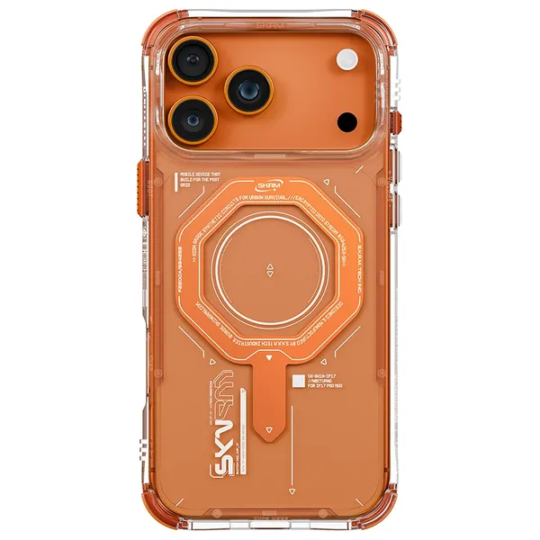 مصمم للمتانة، كفر SKINARMA MAGMA لهاتف iPhone 17 Pro Max باللون البرتقالي يجمع بين ظهر شفاف وبوپير برتقالي جريء. تصميم الطبقتين يوفر حماية قوية من الصدمات مع الحفاظ على جمالية الهاتف. توافق MagSafe يتيح الشحن اللاسلكي بسهولة وتركيب الملحقات بسرعة. قطع دقيق للوصلات والكاميرا يحافظ على سهولة الوصول إلى الأزرار والميكروفونات. يتميز الخلف بتصميم حلقة دائرية مدمجة لتعزيز القبضة ومظهر مميز يمزج بين الحداثة والعملية. .