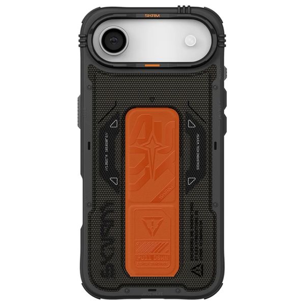 حافظة جلدية نباتية مضادة للرذاذ سكينارما PHANTOM - مع حلقة شحن مغناطيسية - حامل قابل للطي مزدوج الرؤية -لجهاز ايفون 17 اير - أسود