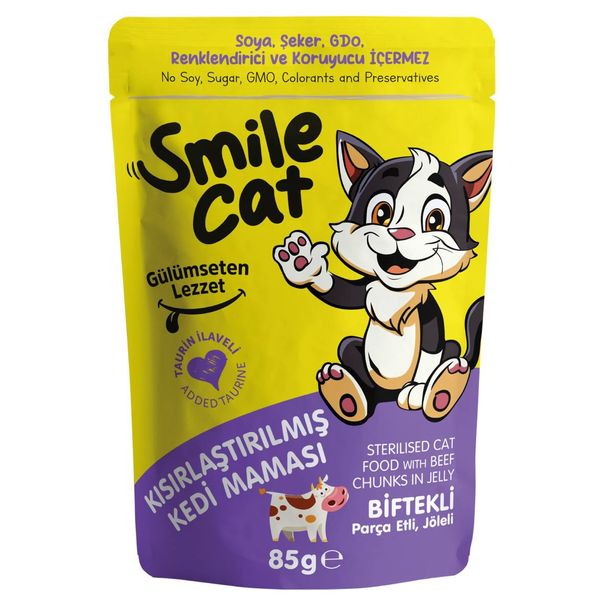 طعام متكامل للقطط المعقمة، غني بنكهة لحم البقر الشهية، يوفر تغذية متوازنة لدعم الصحة العامة والطاقة والهضم السلس