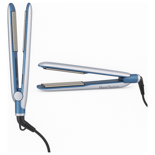 صفائح نانو تيتانيوم مقاومة للحرارة، تسخين سريع حتى 750°F، مناسب للفرد والتمويج (2 في 1)، سلك دوّار 360° لسهولة الاستخدام، تصميم انسيابي أنيق من الأمام والجانب، توزيع حرارة متساوٍ لحماية الشعر