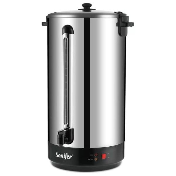 يتميز بهيكل من الفولاذ المقاوم للصدأ، ويوفر تسخينًا سريعًا بقوة 2500 واط، وصنبور مياه أمامي لسهولة الاستخدام وأمانه. يحتوي الجهاز على مقابض جانبية معزولة، وغطاء محكم الإغلاق لتقليل فقدان الحرارة، ومؤشرات لمستوى الماء لمراقبة دقيقة. كما يتميز بنظام أمان مدمج يحمي من الغليان الجاف وارتفاع درجة الحرارة. مصمم لتوفير الماء الساخن باستمرار لتحضير الشاي والقهوة والمشروبات الأخرى في المنازل والمكاتب والمقاهي والمطاعم